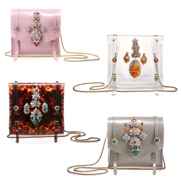 A nova moda entre as francesas – e portuguesas, brasileiras, americanas, canadenses… – é ter no closet uma bolsa da marca Shourouk, que além de criar essas maravilhas, ainda investe em outro tipo de acessório, como brincos, pulseiras e colares gigantes. Feitas de PVC em diferentes cores, as bolsas não passam despercebidas, tudo por conta dos cristais Swarovski e da alça metálica.