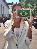 - O primeiro dia do PFW foi marcado pelo desfile da Versace! Na foto estou com camisa e cinto Tod’s, bota de cano alto Miu Miu, clutch Charlotte Olympia e brinco Mixed.