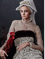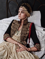 E a capa da Vogue Japan de outubro tem uma brasileira como estrela: Carol Trenini! A top, que estampa as campanhas deste ano de marcas como Prabal Gurung, Dsquared2, Versace e Chloé, aparece na capa usando um macacão Dior super colorido. Em contraste com a cover page, a modelo posou para um editorial cheio de looks clássicos com bordados num clima medieval. As fotos, feitas por Giampaolo Sgura, estão lindas, parecem pinturas. O styling do ensaio ficou por conta de Anna Dello Russo (Vogue Japan).