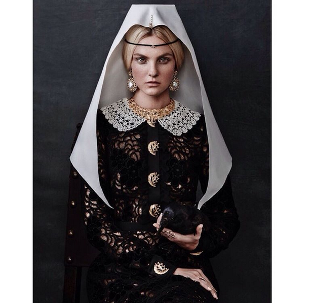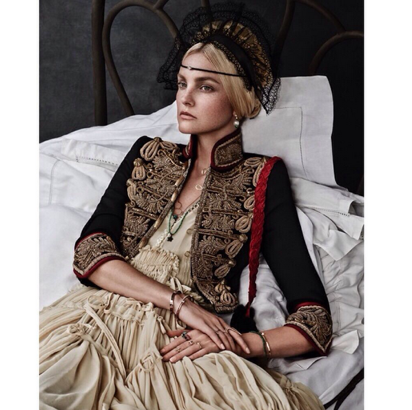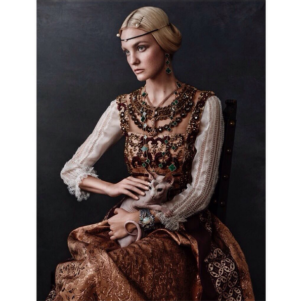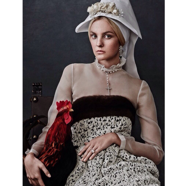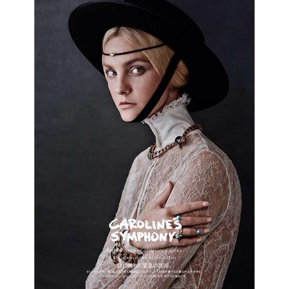 E a capa da Vogue Japan de outubro tem uma brasileira como estrela: Carol Trenini! A top, que estampa as campanhas deste ano de marcas como Prabal Gurung, Dsquared2, Versace e Chloé, aparece na capa usando um macacão Dior super colorido. Em contraste com a cover page, a modelo posou para um editorial cheio de looks clássicos com bordados num clima medieval. As fotos, feitas por Giampaolo Sgura, estão lindas, parecem pinturas. O styling do ensaio ficou por conta de Anna Dello Russo (Vogue Japan).