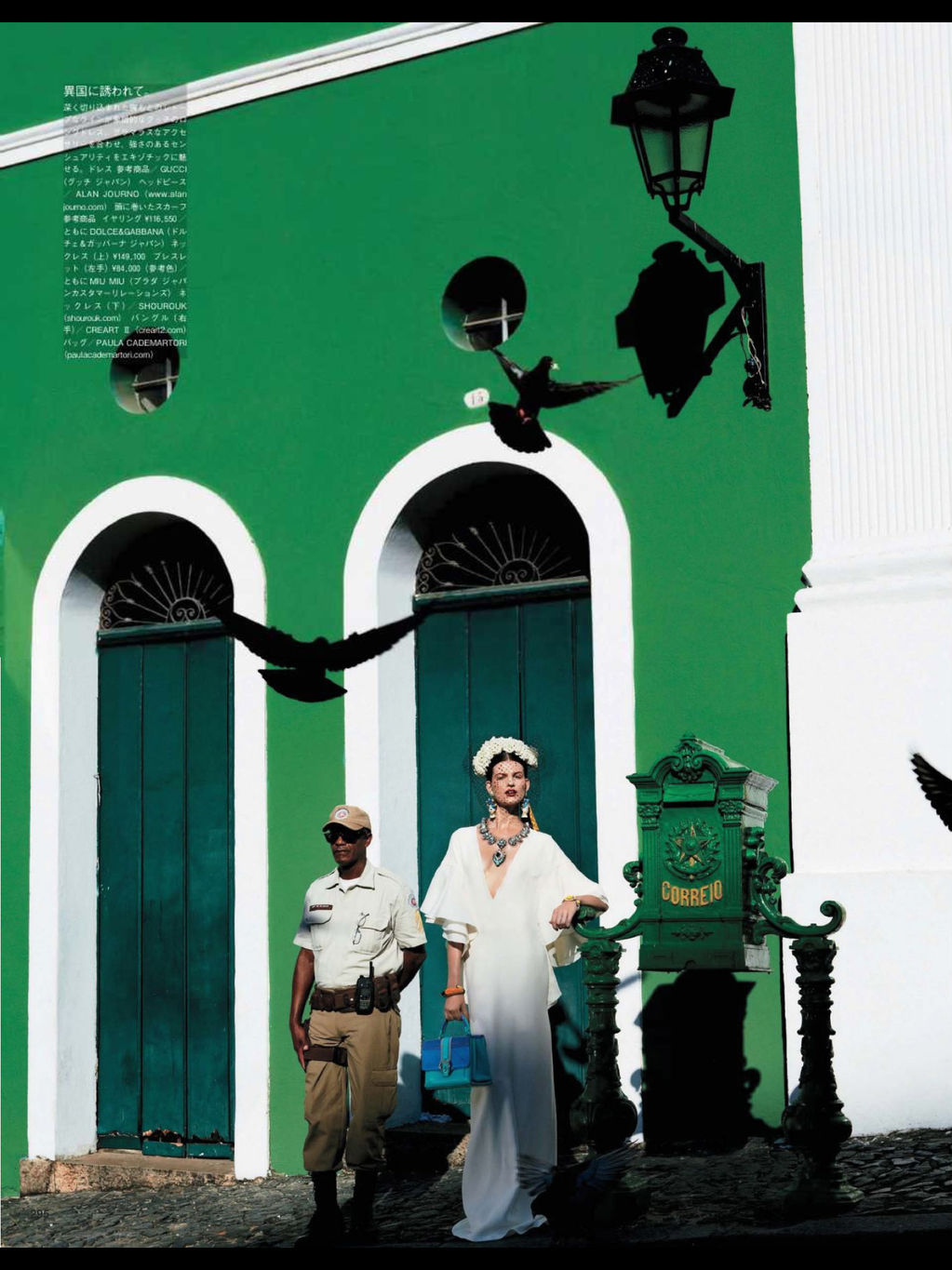 Anna Dello Russo, editor in chefe and creative consulter of Vogue Japan, made a pit stop in Salvador, Bahia, on January. The reason? Shoot the editorials of February for Vogue Brazil, and of course produce a shooting for the publication coordinated by her. The result was published on the April’s edition, and counts with photos of Giampaolo Sgura – the same photographer responsible for the editorials published on the brazilian title – with the model Bette Franke and styled signed by Anna. With a continuation of the original version, the shooting shows Salvador at it’s best – joy, colors, energy and many contrasts. The images are below..