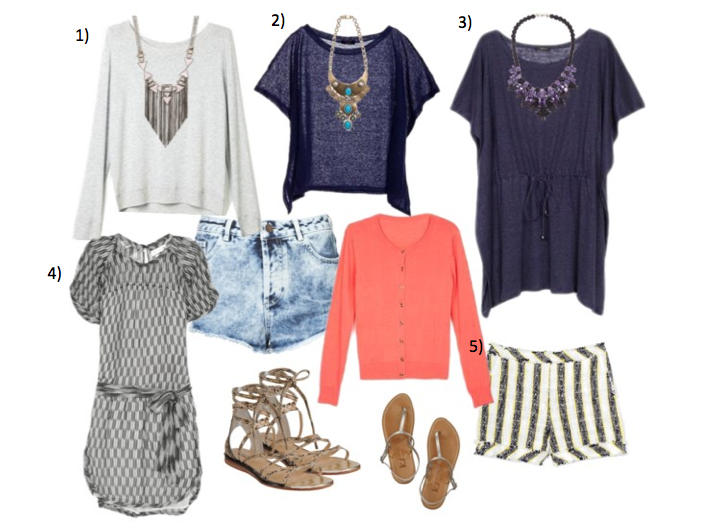 Vestidinhos soltos são sempre bem-vindos como no look três e quatro. Também acho que é sempre bom levar um shorts mais arrumado como esse da MSGM e um casaquinho colorido como esse da My Basic.